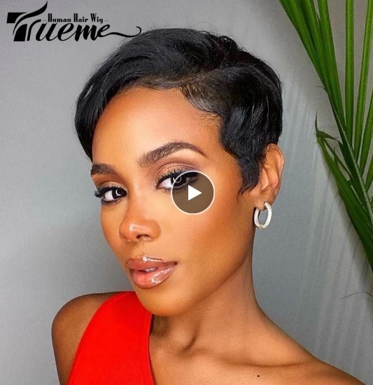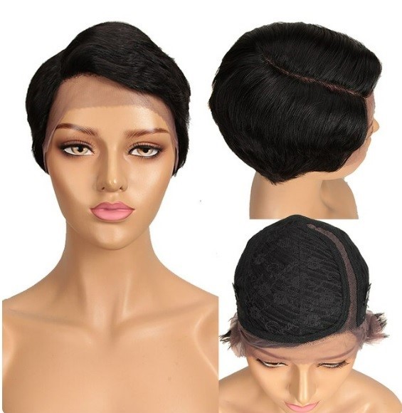 Peluca Corta natural 100% de encaje de corte Pixie corta, postizo de encaje frontal brasileño de color pelucas de cabello humano, negra