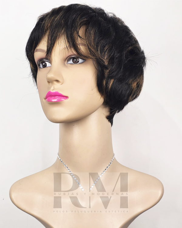 Peluca Natural Corta negra con visos