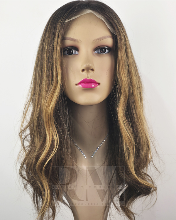 Peluca Natural Fabricada Pelo Humano con cabello Virgen y decolorado efecto Balayage 60 cms – a Pedido Tiempo de Fabricacion y Caraterizacion del Color 5 a 7 dias