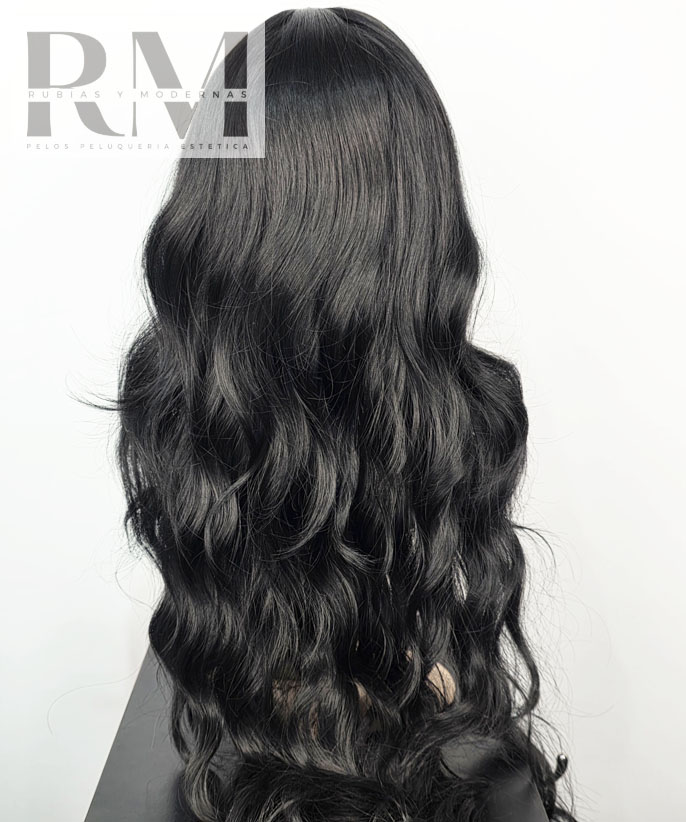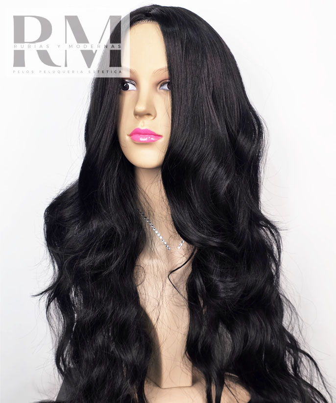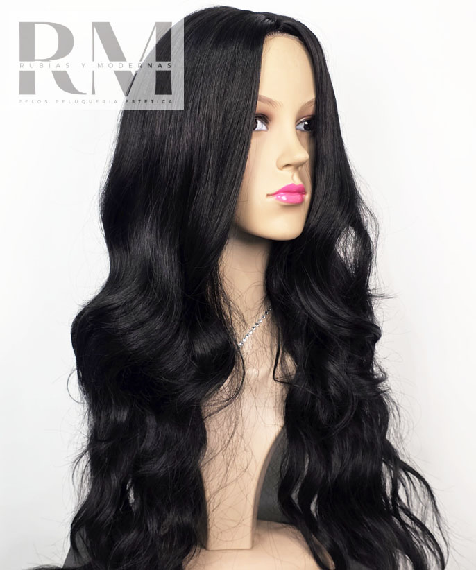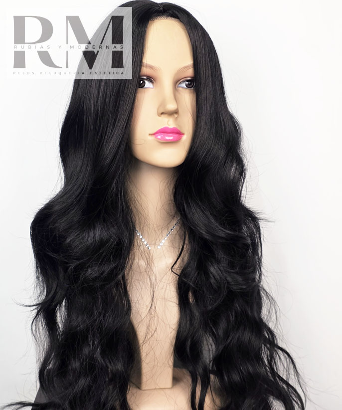 PELUCA SINTÉTICA EXTRA LARGA NEGRA ONDULADA KANEKALON